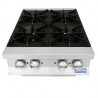 Parrillas de 4 quemadores sobre mostrador. Marca San-Son. Modelo SS 4Q. 4 quemadores tipo hélice 5.5 de hierro fundido de 33,000 BTU/HR cada uno. Parrillas individuales de fierro fundido de 12″ x 12″ con cono difusor ofrecen un calor uniforme y constante. Piloto individual para cada quemador. Charola de derrames. Cuerpo fabricado en acero inoxidable. Válvulas San-Son® tipo junior. Dimensiones Frente: 0.61 m Fondo: 0.747 m Alto: 0.304 m. Consumos totales 132,000 BTU/hr. Tubo de alimentación de gas: 3/4” NP. Sistema de gas: N4.5 – 6 oz/in2A