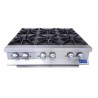 La línea San-Son de Parrillas cuenta con quemadores de fierro fundido de 33,000 BTU/hrs. de capacidad, su parrilla individual porcelanizada de 12″ x 12″ con cono difusor ofrecen un calor uniforme y constante. Características • 6 quemadores tipo helice 5.5 de hierro fundido de 33,000 btu cada uno. • Parrilla de superficie de hierro fundido. • Piloto individual. • Charola de derrames. • Cuerpo fabricado en acero inoxidable. • Válvulas San-Son® tipo junior. Configuración Técnica Dimensiones Frente: 0.915 m Fondo: 0.747 m Alto: 0.304 m Consumos 198,000 BTU/hr 39.312 KCAL/hr 1.710 m3/hr