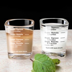 Líneas de Medición: Marcadores claros en mililitros (ml) y onzas (oz) para facilitar la medición exacta de los líquidos, especialmente diseñado para espressos dobles y ristrettos.
