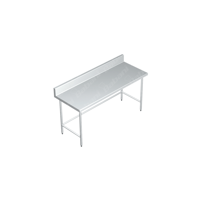 MESA DE TRABAJO A MURO SIN ENTREPAÑO, CUBIERTA LISA CON LAMBRIN POSTERIOR, FABRICADA EN ACERO INOXIDABLE. CALIBRE 18, MONTA SOBRE ESTRUCTURA TUBULAR DE 1 1/2" Y DE 1 1/4" DE Ø, MIDE 1.80 X 0.70 X 0.90 MTS. ACERO INOXIDABLE 304.